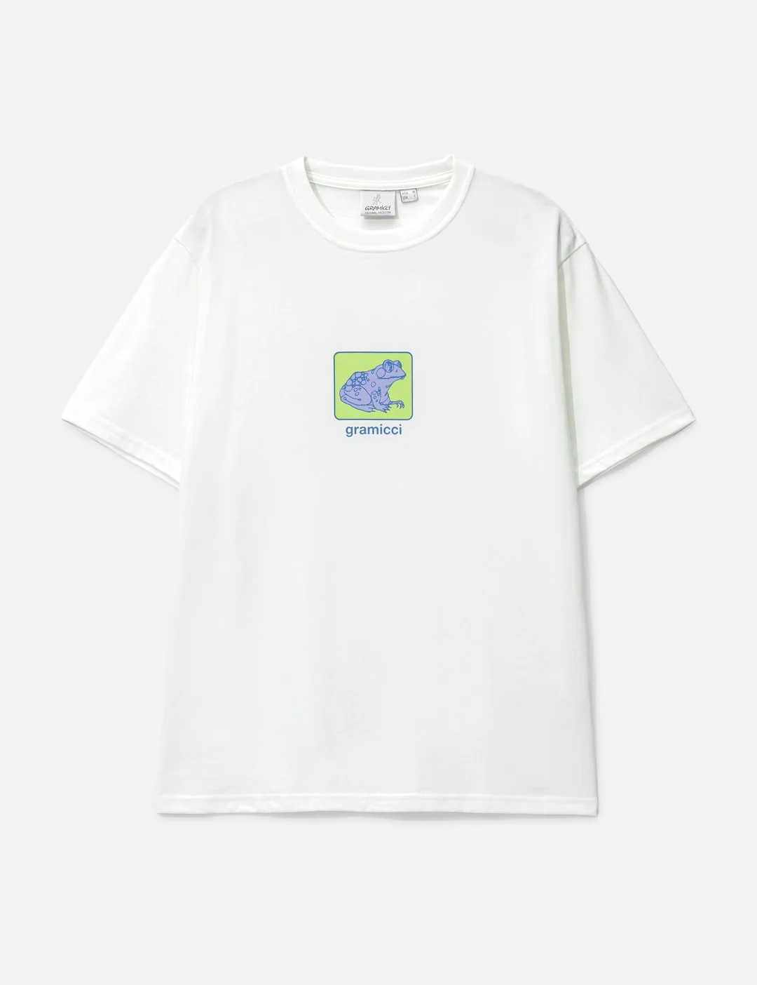 - Gramicci - Toad Tee - Standard fit - Ribbed crewneck - Short sleeves - Logo and graphic printed on the front - Double-stitched hem - Color: White - Material: 100% Cotton - See more SS T-Shirts, T-Shirts and Clothing - Model wears size M - Model measures: Height 186cm, Chest 34”/86cm, Waist 28”/71cm, Hip 36”/91cm - Vendor Code: G5FU-T089