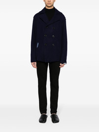 denim-patch double-breasted jacket Highlights - Navy blue - Wool-cotton blend - Denim patchwork design - Wide notch lapels - Double-breasted button fastening - Long sleeves - Straight hem Imported Composition Outer: Wool 98%, Cotton 2% Lining: Rayon 100% SIZE & FIT Model measurements Height 6 ft 2 in(1.87 m) Bust/Chest 31.49 in(80 cm) Hips 37.79 in(96 cm) Waist 27.95 in(71 cm) FittingInformation Designed to be unstructured, offering a loose fit throughout Made from a midweight non-stretch fabric This piece fits true to size – take your usual size