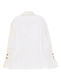 distressed cotton shirt jacket Highlights - Ecru - Front button fastening - Multiple patch pockets - Frayed hem Made in United States Composition Cotton 100% Washing instructions Dry Clean Only