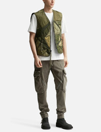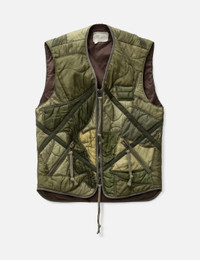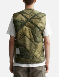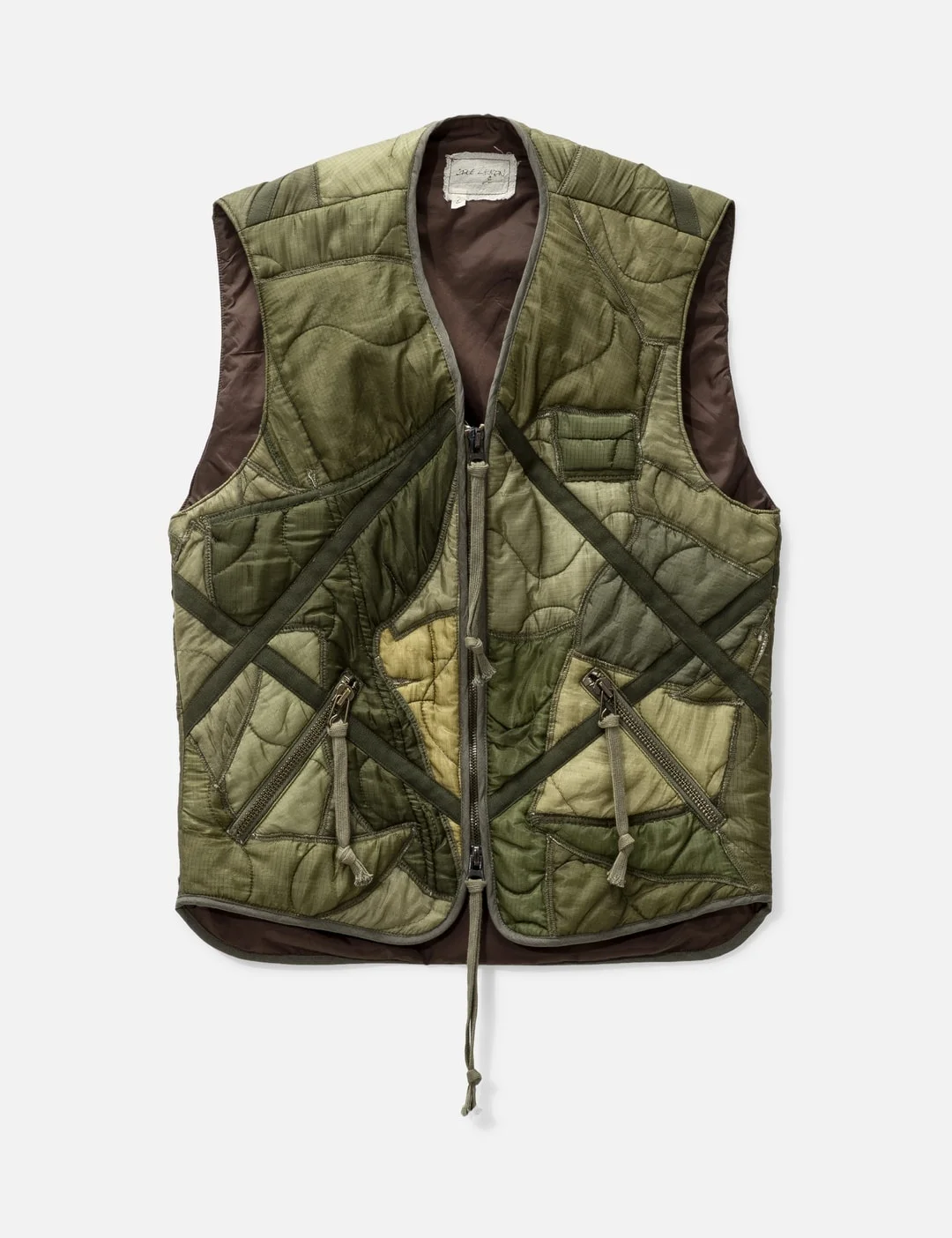 - GREG LAUREN - Mixed Puffer Zip Vest - Padded vest - Patchwork design - Two way zip closure - Two side hand pockets - Logo patch at rear - Color: Army - Material: 80% Nylon, 20% Cotton - See more Vests and Clothing SIZING - Model wears size 2 - Model measures: Height 186cm, Chest 35”/89cm, Waist 30.5”/78cm, Hip 35.5”/91cm