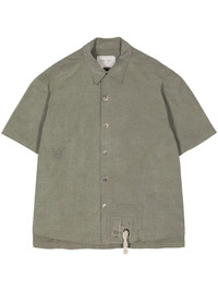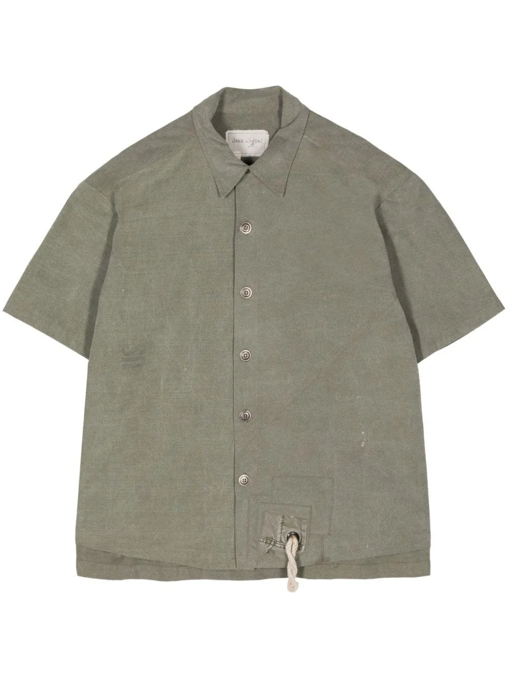 Army Tent cotton shirt Highlights - Sage green - Cotton - Rope detailing - Straight-point collar - Front button fastening - Drop shoulder - Short sleeves - High-low hem Made in United States Composition Cotton 100%