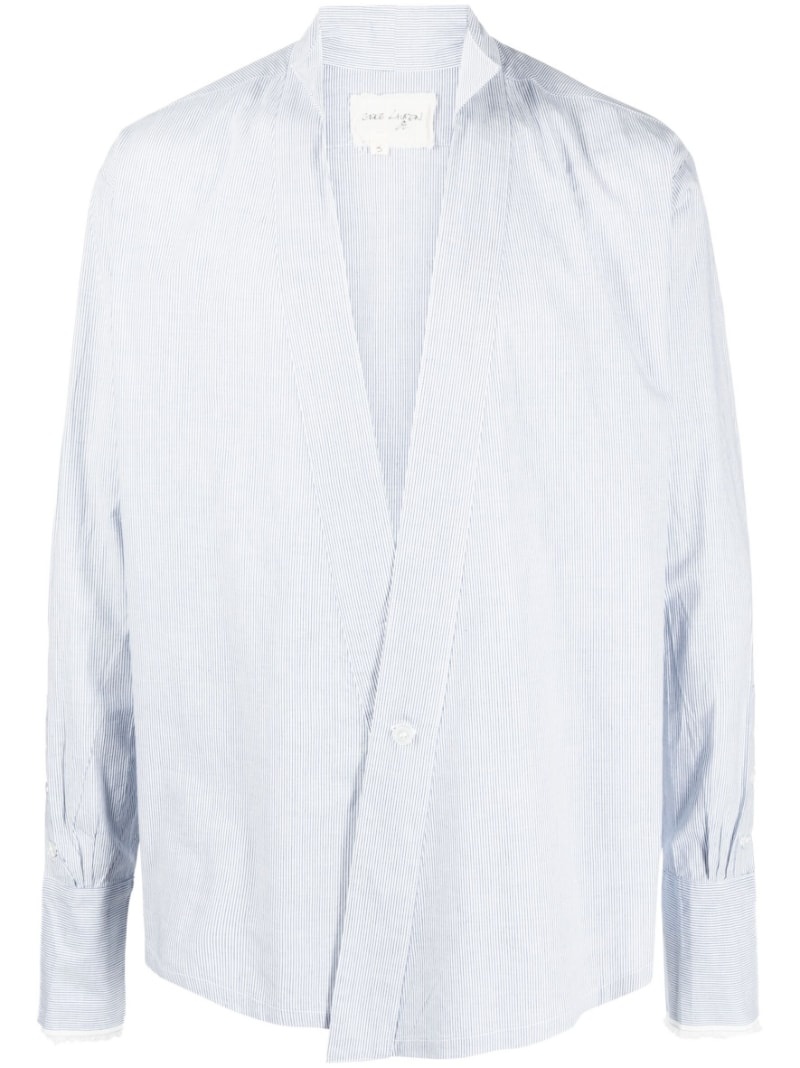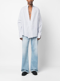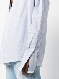 pinstripe V-neck long-sleeve shirt Highlights - Cornflower blue/white - Cotton - Pinstripe pattern - Frayed edge - Plunging v-neck - Front button fastening - Long sleeves - Buttoned cuffs - Straight hem - We've partnered with good on you — an independent agency that rates how brands perform in relation to their impact on the planet, people and animals, with a multi-criteria rating simplified to a five points scale. in order to be awarded our conscious label, larger brands need to score a minimum of four out of five ('good'), while smaller brands must score at least three out of five ('it's a start'). - This item comes from a brand rated four out of five ('good') by good on you. please note, this is a brand-level rating and does not guarantee that this product is made with conscious materials. - Learn more about what makes a product conscious on our conscious criteria page Made in United States Composition Cotton 100% SIZE & FIT Model measurements Height 5 ft 10 in(1.79 m) Bust/Chest 31.9 in(81 cm) Hips 36.6 in(93 cm) Waist 24.4 in(62 cm) FittingInformation Designed to be unstructured, offering a loose fit throughout Made from a midweight non-stretch fabric This piece fits true to size – take your usual size