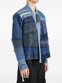 Mixed Blues GL1 cropped jacket Highlights - Blue - Cotton blend - Patchwork design - V-neck - Open front - Long sleeves - Waist tabs - Raw-cut hem - Cropped Made in United States Composition Cotton 98%, Wool 1%, Rayon 1%