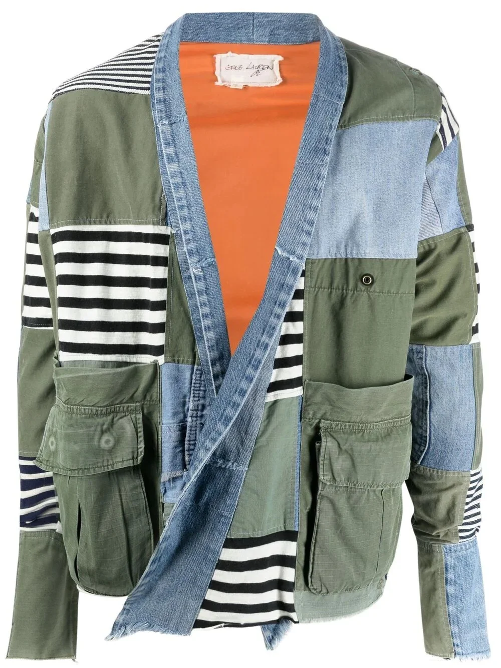 open-front patchwork jacket Highlights - Multicolour - Cotton - Patchwork design - Frayed edge - No fastening - Two front patch pockets - Long sleeves - Full lining Made in United States Composition Outer: Cotton 100% Lining: Nylon 100% SIZE & FIT Model measurements Height 6 ft 2 in(1.89 m) Bust/Chest 35.43 in(90 cm) Hips 36.61 in(93 cm) Waist 28.74 in(73 cm) FittingInformation This piece fits true to size. We recommend you get your regular size Cut for a loose fit Made with a mid-weight non-stretch fabric