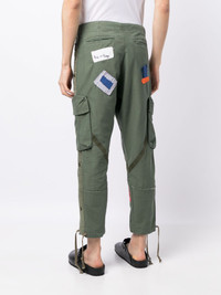 patchwork cargo trousers Highlights - Khaki green - Cotton blend - Patchwork detailing - Mid-rise - Cropped leg - Drawstring waist - Two side inset pockets - Two side cargo pockets - Two rear welt pockets - Drawstring cuffs Made in United States Composition Cotton 98%, Linen/Flax 2% SIZE & FIT Model measurements Height 6 ft 2 in(1.87 m) Bust/Chest 34.25 in(87 cm) Hips 36.22 in(92 cm) Waist 29.52 in(75 cm) FittingInformation Designed for a relaxed tapered leg, allowing a comfortable loose fit above the knee with a closer fit towards the calves Adjust this piece’s waistband to your preference using the drawstring Made from a midweight non-stretch fabric This piece fits true to size – take your usual size Washing instructions Dry Clean Only