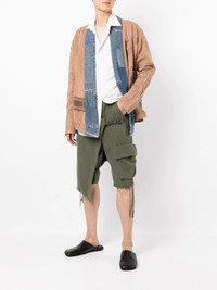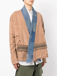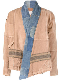 patchwork-design denim-trim jacket Highlights - Light brown - Cotton-wool blend - Denim trim - Patchwork design - Open front - Long sleeves Made in United States Composition Cotton 90%, Wool 10% SIZE & FIT Model measurements Height 6 ft 2 in(1.87 m) Bust/Chest 34.25 in(87 cm) Hips 36.22 in(92 cm) Waist 29.52 in(75 cm) FittingInformation This piece fits true to size. We recommend you get your regular size Cut for a loose fit Made with a mid-weight fabric Washing instructions Dry Clean Only
