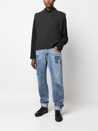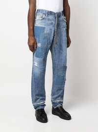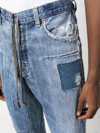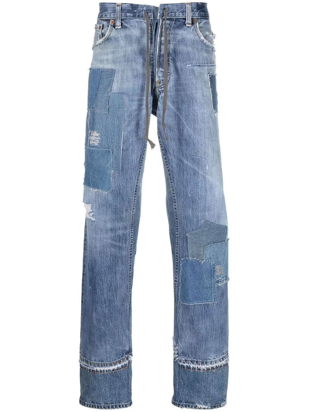 patchwork-detail straight-leg jeans Highlights - Indigo blue - Cotton - Denim - Patchwork design - Frayed detailing - Belt loops - Drawstring fastening waist - Classic five pockets - Straight leg Made in United States Composition Cotton 100% SIZE & FIT Model measurements Height 6 ft 2 in(1.88 m) Bust/Chest 36.61 in(93 cm) Hips 35.82 in(91 cm) Waist 27.95 in(71 cm) FittingInformation This piece fits true to size. We recommend you get your regular size Regular fit Made with a mid-weight non-stretch fabric