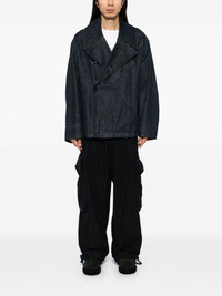 pinstriped wide trousers Highlights - Navy/white - Wool blend - Pinstripe pattern - Concealed fly and button fastening - Drawstring waist - Two side slash pockets - Two rear jetted pockets - Two side cargo pockets - Wide leg - Drawstring hem Made in United States Composition Wool 98%, Rayon 2% SIZE & FIT Model measurements Height 6 ft 1 in(1.85 m) Bust/Chest 35.43 in(90 cm) Hips 36.22 in(92 cm) Waist 28.74 in(73 cm) FittingInformation Designed for a relaxed tapered leg, allowing a comfortable loose fit above the knee with a closer fit towards the calves The internal drawstring at the hem allows for fitted preferences at the ankle Made from a midweight non-stretch fabric