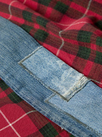 Greg Lauren's cardigan is trimmed with patchworked denim that's faded and distressed for a vintage look. Cut to layer comfortably, it's made from checked cotton-flannel and frayed along the hem. Size & Fit - Size 1 = S, 2 = M, 3 = L, 4 = XL and 5 = XXL - Model wears a size larger to achieve a looser fit - Mid-weight, non-stretchy fabric - Model is shown wearing a 2 - Model measures: chest 36"/ 92cm, height 6'2"/ 182cm Details & Care - Multicoloured cotton-flannel, tonal-blue denim - 100% cotton - Dry clean