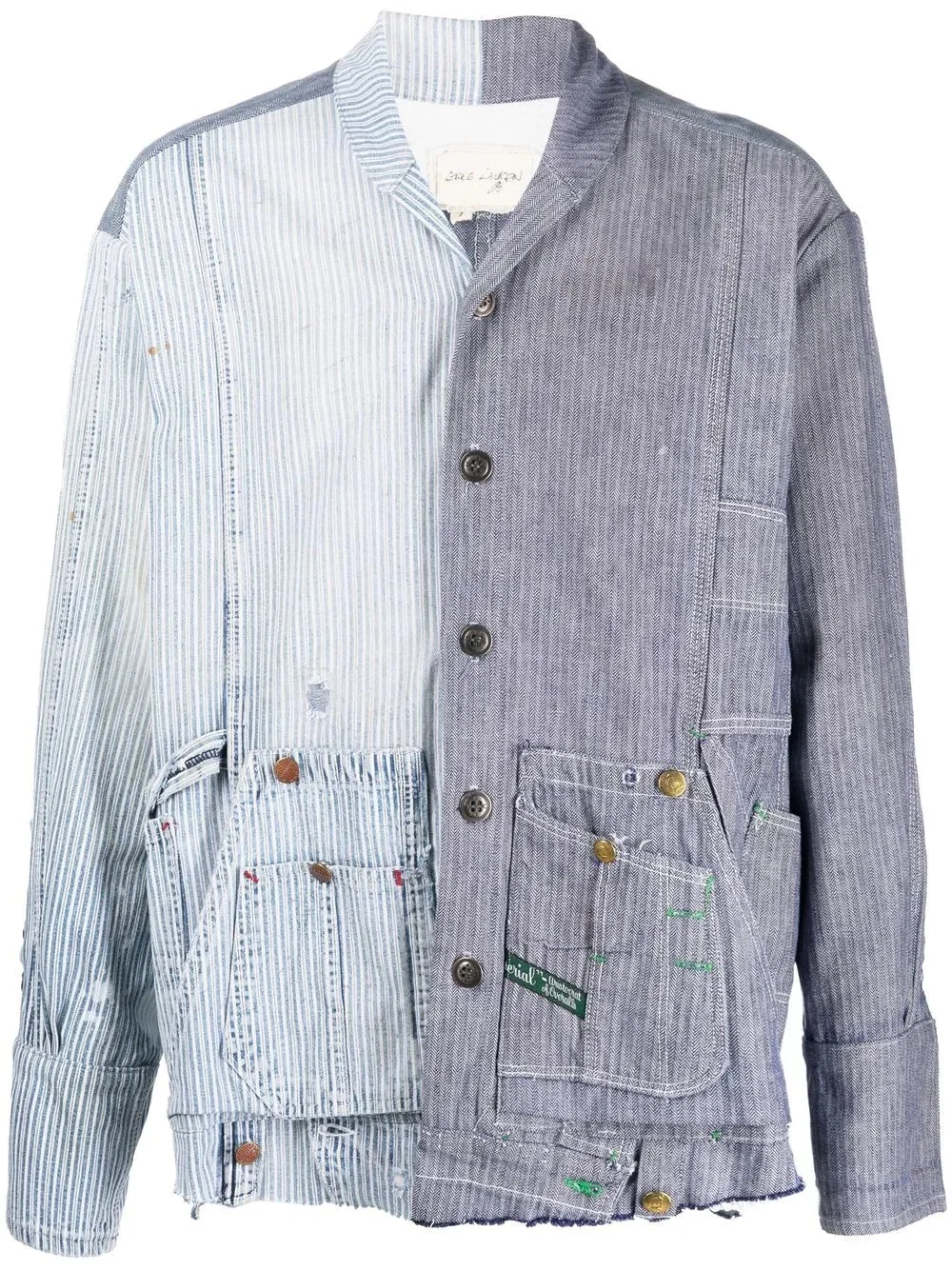 striped patchwork cotton shirt Highlights - Blue - Cotton - Two-tone design - Vertical stripe pattern - Patchwork design - Front button fastening - Long sleeves - Straight hem Made in United States Composition Cotton 100% SIZE & FIT Model measurements Height 5 ft 10 in(1.79 m) Bust/Chest 33.07 in(84 cm) Hips 35.82 in(91 cm) Waist 24.01 in(61 cm) FittingInformation This piece fits true to size. We recommend you get your regular size Cut for a loose fit Made with a mid-weight non-stretch fabric Washing instructions Machine Wash