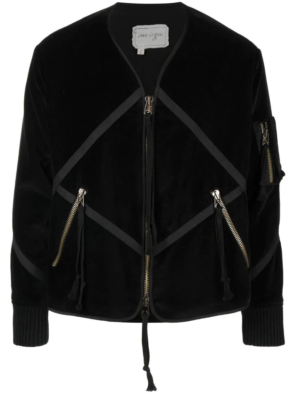 velvet patchwork jacket Greg Lauren’s eponymous label offers an eco-conscious look at avant-garde design. Each collection finds its inspiration from recycled and excess scrap material, presenting pieces like this jacket that is crafted from patchwork pieces of surplus fabric. Highlights - Black - Cotton - Patchwork design - Piped-trim detailing - Front zip fastening - Long sleeves - Curved hem Made in United States Composition Lining: Rayon 100% Outer: Cotton 100% SIZE & FIT Model measurements Height 6 ft 1 in(1.85 m) Bust/Chest 35.82 in(91 cm) Hips 37.79 in(96 cm) Waist 29.13 in(74 cm) FittingInformation This piece fits true to size. We recommend you get your regular size Cut for a loose fit Made with a mid-weight non-stretch fabric Washing instructions Dry Clean Only
