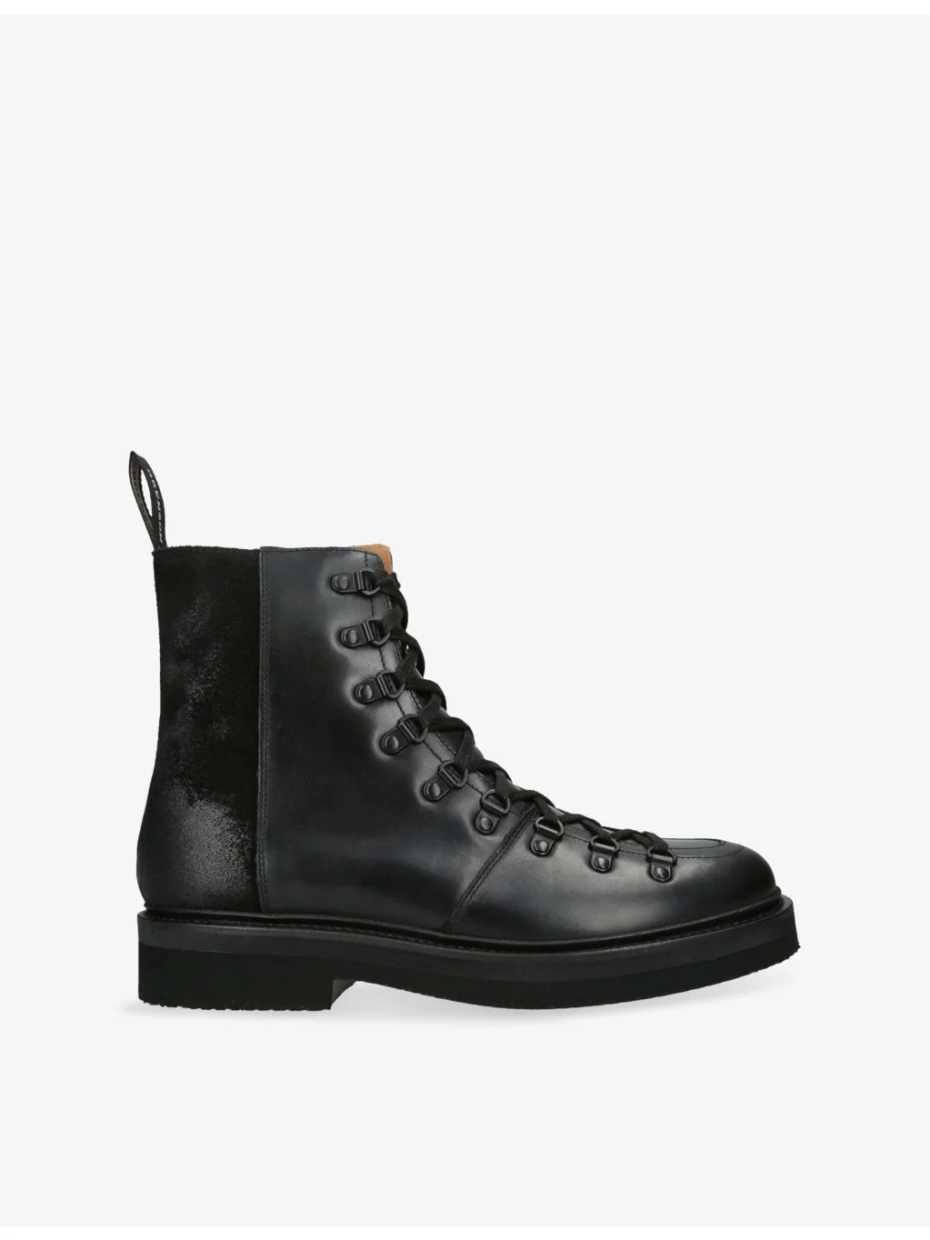 PRODUCT DETAILS - Grenson leather and suede hiking boots - 100% leather; 100% suede - Lace-up fastening - Closed round toe, ankle length, burnished suede panel at back, speed hooks, cross-over lacing, 201 last, welted sole, branded pull-loop at back - Specialist leather clean - Upper: 100% leather; 100% suede - Lining: 100% leather - Sole: 100% rubber Ref: R04519586