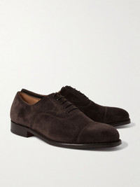 EXCLUSIVE AT MR PORTER. Grenson's 'Cambridge' Oxford shoes are a worthy investment to elevate your formalwear. Stitched with classic cap toes, they're made from suede and proudly marked with the brand's 'Bench Made In England' stamp along the soles. Size & Fit - Fits true to size. Take your normal size - UK sizing Details & Care - Dark-brown suede (Cow) - Lace-up