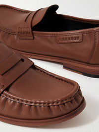 Grenson's 'Simeon' penny loafers have gathered apron toes for a more traditional, old-school look. Designed to fit "like a glove", they're made from supple leather and detailed with debossed logo tabs along the sides. Size & Fit - Fits true to size. Take your normal size - Only available in full sizes, go up to the nearest whole size if you take a half size - UK sizing Details & Care - Brown leather (Cow)