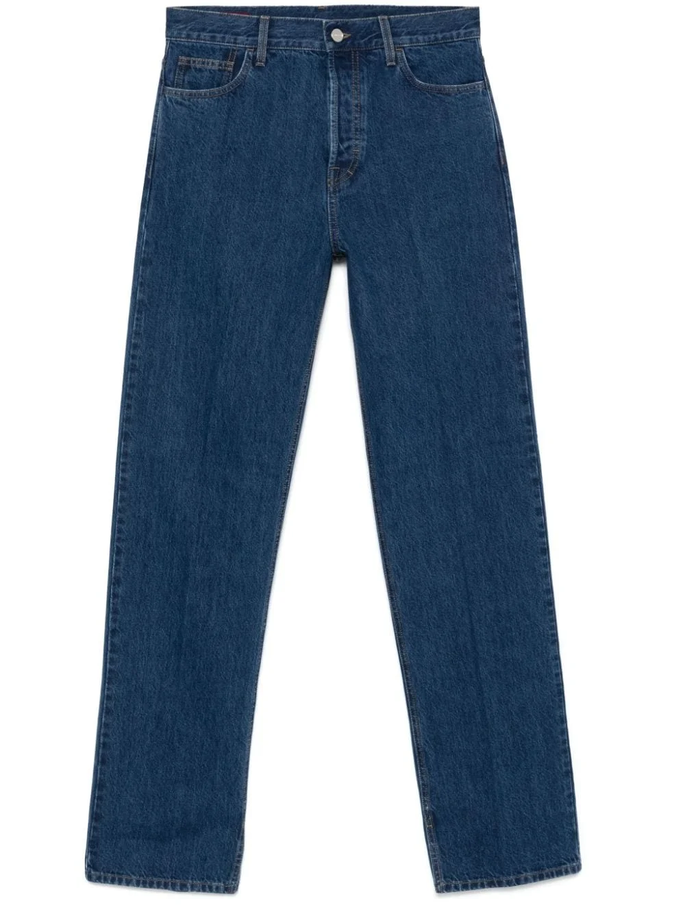 straight-leg jeans Highlights - Indigo blue - Cotton blend - Denim - Button fly fastening - Belt loops - Mid-rise - Classic five pockets - Logo patch to the rear - Laser print logo to the rear - Straight leg Made in Italy Composition Cotton 98%, Other fibres 2% SIZE & FIT Model measurements Height 6 ft 2 in(1.87 m) Bust/Chest 36.41 in(92.5 cm) Hips 37 in(94 cm) Waist 29.52 in(75 cm) FittingInformation Designed with a straight leg, these jeans allow for an unrestricted and comfortable fit over the leg Sturdy and hard-wearing, this denim piece offers no stretch Washing instructions Machine Wash