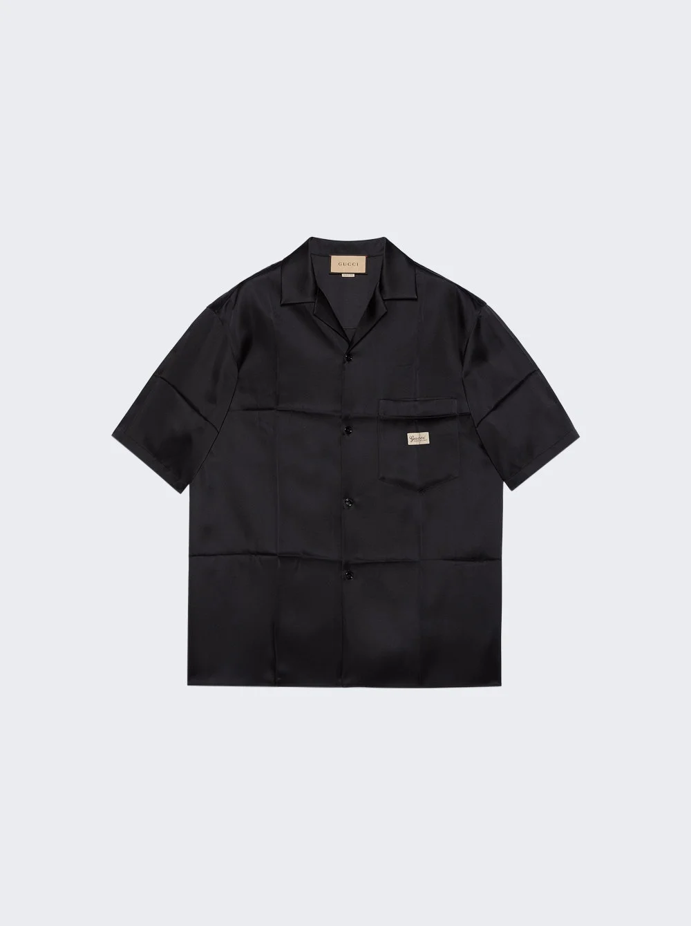 Details - Black acetate duchesse - 'Gucci Made In Italy' embroidered label - Notch collar - Short sleeves - Chest pocket - Folded pleats - Button closure Dimensions: Model is 6'1"/185cm and is wearing a size EU48 Composition: 100% Acetate Care: Care according to label Brand Style: 769517 ZHA45 Designer/Brand: GUCCI