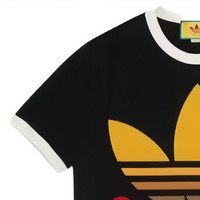 A second chapter in the adidas and Gucci collection, where the Web continues to juxtapose with the three white stripes and the GG monogram combines with the Trefoil. Pulling inspiration from the Creative Director’s memories of the '80s and '90s, emblematic House’s motifs mix with those of the historic sportswear brand adidas resulting in a series of hybrid looks. This cotton jersey T-shirt has a contrast collar and a center Gucci Trefoil print. - Black cotton jersey with contrast trim - Gucci Trefoil print - adidas x Gucci - Crewneck - The product shown in this image is a size small
