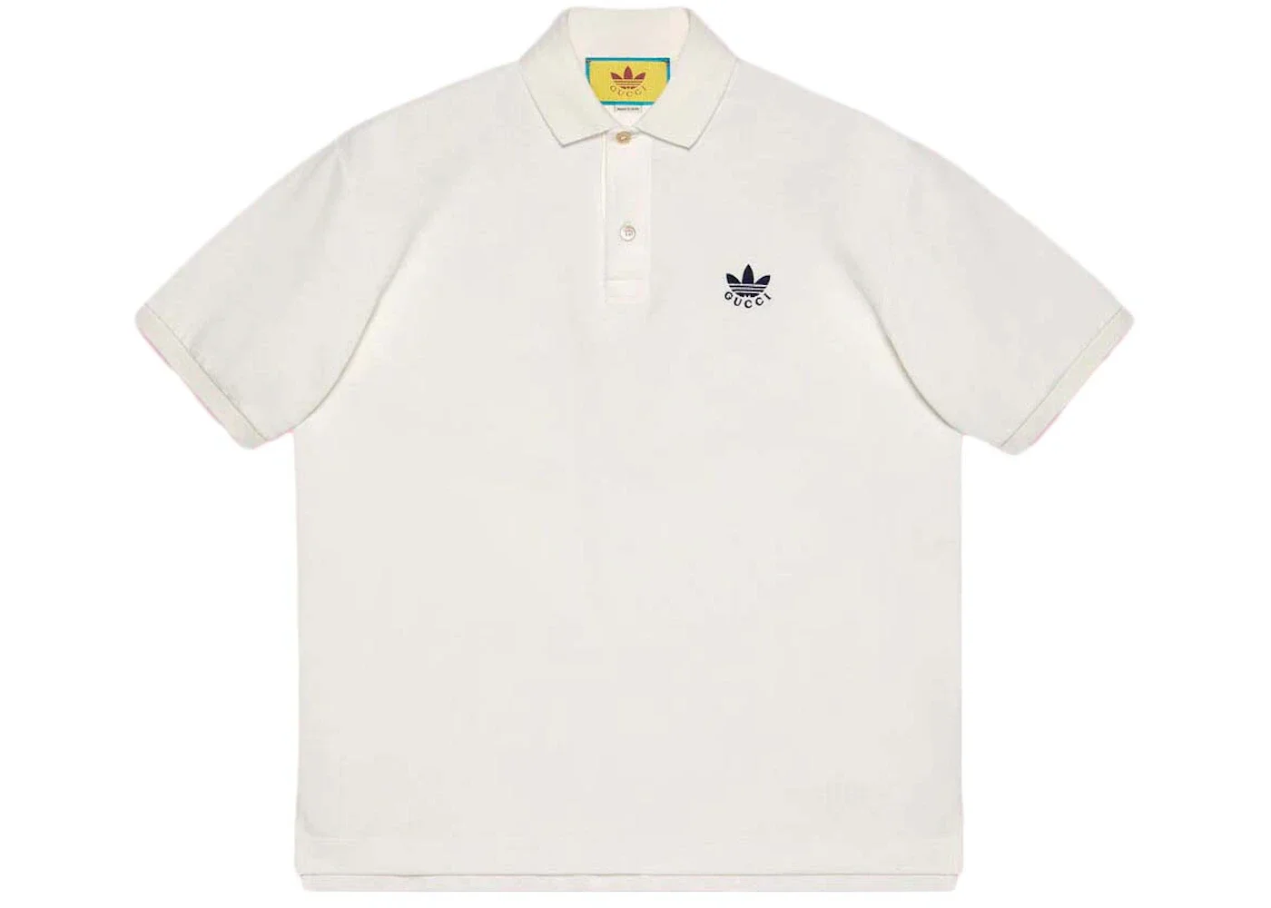adidas and Gucci venture into a collection, where the Web juxtaposes with the three white stripes, and the GG monogram combines with the trefoil. Pulling inspiration from the Creative Director’s memories of the ‘80s and ‘90s, emblematic House’s motifs mix with those of the historic sportswear brand adidas resulting in a series of hybrid looks. This white cotton piquet polo shirt with the Gucci Trefoil embroidery on the front. - White cotton piquet - Gucci Trefoil embroidery on the front - adidas x Gucci - Button-through placket - Made in Italy - The product shown in this image is a size medium