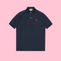 adidas and Gucci venture into a collection, where the Web juxtaposes with the three white stripes, and the GG monogram combines with the trefoil. Pulling inspiration from the Creative Director’s memories of the ‘80s and ‘90s, emblematic House’s motifs mix with those of the historic sportswear brand adidas resulting in a series of hybrid looks. This dark blue cotton piquet polo shirt with the Gucci Trefoil embroidery on the front. - Dark blue cotton piquet - Gucci Trefoil embroidery on the front - adidas x Gucci - Button-through placket - Made in Italy - The product shown in this image is a size medium