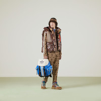A second chapter in the adidas and Gucci collection, where the Web continues to juxtapose with the three white stripes and the GG monogram combines with the Trefoil. Pulling inspiration from the Creative Director’s memories of the '80s and '90s, emblematic House’s motifs mix with those of the historic sportswear brand adidas resulting in a series of hybrid looks. A pair of sweatpants defined by a GG Trefoil jersey jacquard and grosgrain stripes. - Beige and ebony GG Trefoil jersey jacquard - Grosgrain 3-Stripes - adidas x Gucci - Elastic waistband - Drawstring closure - The product shown in this image is a size small