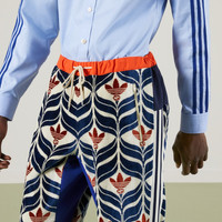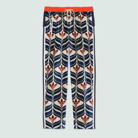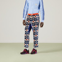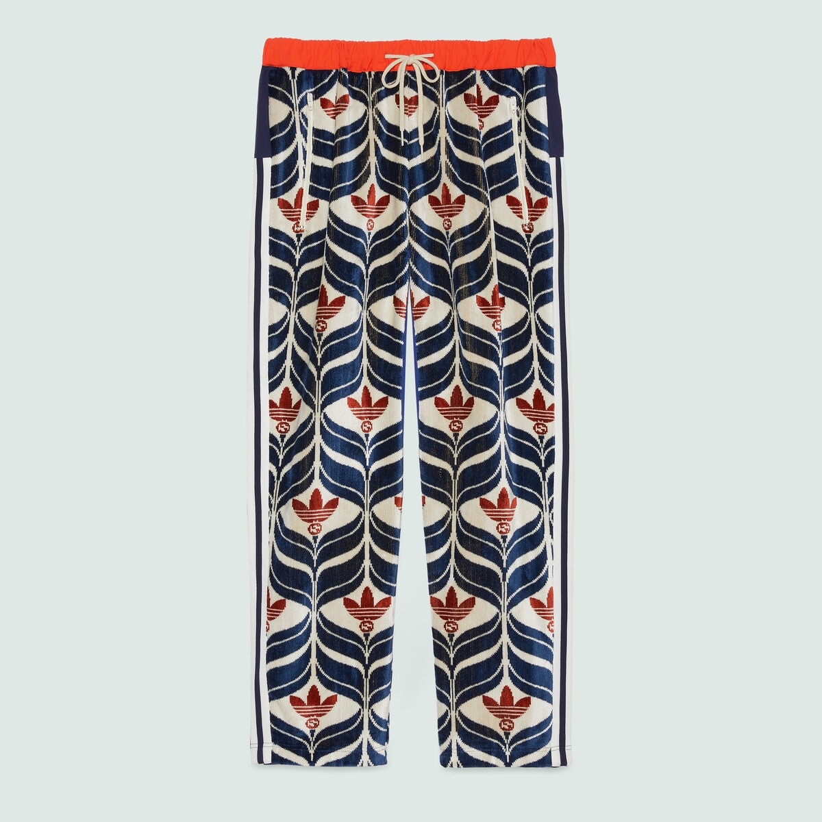 A second chapter in the adidas and Gucci collection, where the Web continues to juxtapose with the three white stripes and the GG monogram combines with the Trefoil. Pulling inspiration from the Creative Director’s memories of the '80s and '90s, emblematic House’s motifs mix with those of the historic sportswear brand adidas resulting in a series of hybrid looks. These velvet pants feature an allover Interlocking G and Trefoil design. - Ivory, blue and red Interlocking G and Trefoil velvet and viscose - adidas x Gucci - Elastic waistband with drawstring - Cropped - Leg opening: 7.5", based on a size 46 (IT) - The product shown in this image is a size 46 (IT)