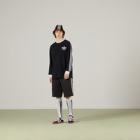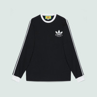 A second chapter in the adidas and Gucci collection, where the Web continues to juxtapose with the three white stripes and the GG monogram combines with the Trefoil. Pulling inspiration from the Creative Director’s memories of the '80s and '90s, emblematic House’s motifs mix with those of the historic sportswear brand adidas resulting in a series of hybrid looks. This long sleeve T-shirt is crafted in heavy cotton jersey and is detailed with the Gucci Trefoil print on the front chest. - Black heavy cotton jersey - Gucci Trefoil print - adidas x Gucci - 3-Stripe - Crewneck - The product shown in this image is a size small