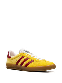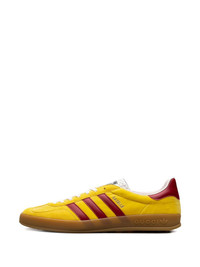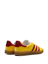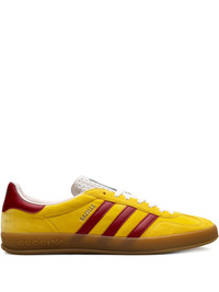 Emblematic House’s motifs mix with those of the historic sportswear brand adidas. The collection sees both heritages encoded in a trio of lines, where adidas and Gucci combine archival emblems. Creative Director, Alessandro Michele pulls inspiration from his memories of the ‘80s and ‘90s for a collection that is both nostalgia-driven and contemporary. These Gazelle sneakers have a Trefoil print and stripes. - Yellow velvet with details in Demetra—crafted from animal-free raw materials that are primarily from sustainable, renewable, and bio-based sources - Men's - Yellow suede trim - adidas x Gucci - Gucci Trefoil label - Gucci Trefoil print - Red three stripes insert - 'Gazelle' embroidery - Gucci Trefoil embossed - Rubber sole - Lace-up closure - Made in Italy