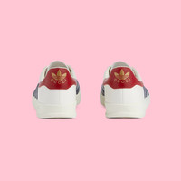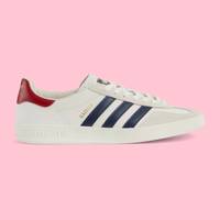 Emblematic House’s motifs mix with those of the historic sportswear brand adidas. The collection sees both heritages encoded in a trio of lines, where adidas and Gucci combine archival emblems. Creative Director, Alessandro Michele pulls inspiration from his memories of the ‘80s and ‘90s for a collection that is both nostalgia-driven and contemporary. These Gazelle sneakers have a Trefoil print and stripes. - White leather with details in Demetra—crafted from animal-free raw materials that are primarily from sustainable, renewable, and bio-based sources - Men's - White suede trim - adidas x Gucci - Gucci Trefoil label - Gucci Trefoil print - Three stripes insert - 'Gazelle' print - Gucci Trefoil embossed - Rubber sole - Flat - Made in Italy
