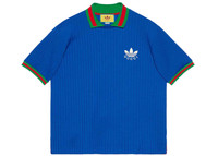 adidas and Gucci venture into a collection, where the Web juxtaposes with the three white stripes, and the GG monogram combines with the trefoil. Pulling inspiration from the Creative Director’s memories of the ‘80s and ‘90s, emblematic House’s motifs mix with those of the historic sportswear brand adidas resulting in a series of hybrid looks. This cobalt blue polo shirt is finished with the Gucci Trefoil embroidery on the front. - Cobalt blue polyester blend - Gucci Trefoil embroidery on the front - Green and red Web rib on collar, neckline and cuffs - adidas x Gucci - Short sleeves - Made in Italy - The product shown in this image is a size medium