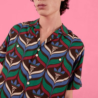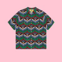 Emblematic House’s motifs mix with those of the historic sportswear brand adidas. The collection sees both heritages encoded in a trio of lines, where adidas and Gucci combine archival emblems. Creative Director, Alessandro Michele pulls inspiration from his memories of the ‘80s and ‘90s for a collection that is both nostalgia-driven and contemporary. This bowling shirt is crafted in viscose with an allover Interlocking G and Trefoil print. - Brown and green viscose with Interlocking G and Trefoil print - adidas x Gucci - Straight hem - Side vents - Made in Italy - The product shown in this image is a size 48 (IT)