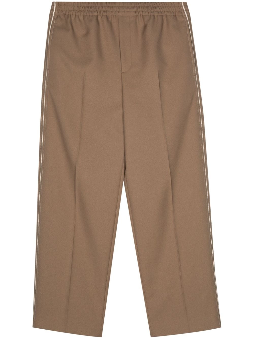 appliqué-logo cotton tapered trousers Highlights - Light brown - Cotton - Twill weave - Elasticated waistband - Two side slash pockets - Pressed crease - Side stripe detailing - Appliqu㩠logo - Two rear flap pockets - Tapered leg Made in Italy Composition Lining: Cotton 100% Polyester 100%