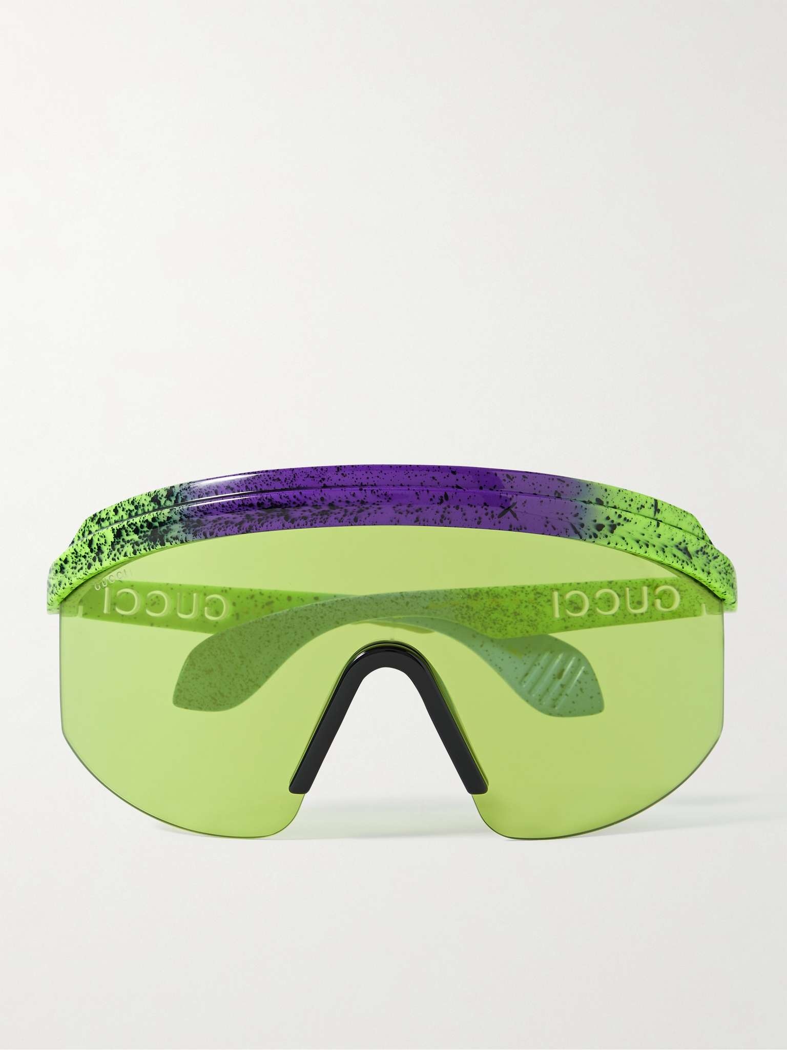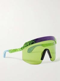 Gucci's bold sunglasses look like they're right out of the '80s. Inspired by ski goggles, they've been made in Japan from colourful, speckled acetate and are engraved with the brand name along the arms. Size & Fit - Frame Width: 18cm / 7.1in - Frame Height: 8.5cm / 3.3in Details & Care - Multicoloured acetate - Come with a case - 100% UV protection