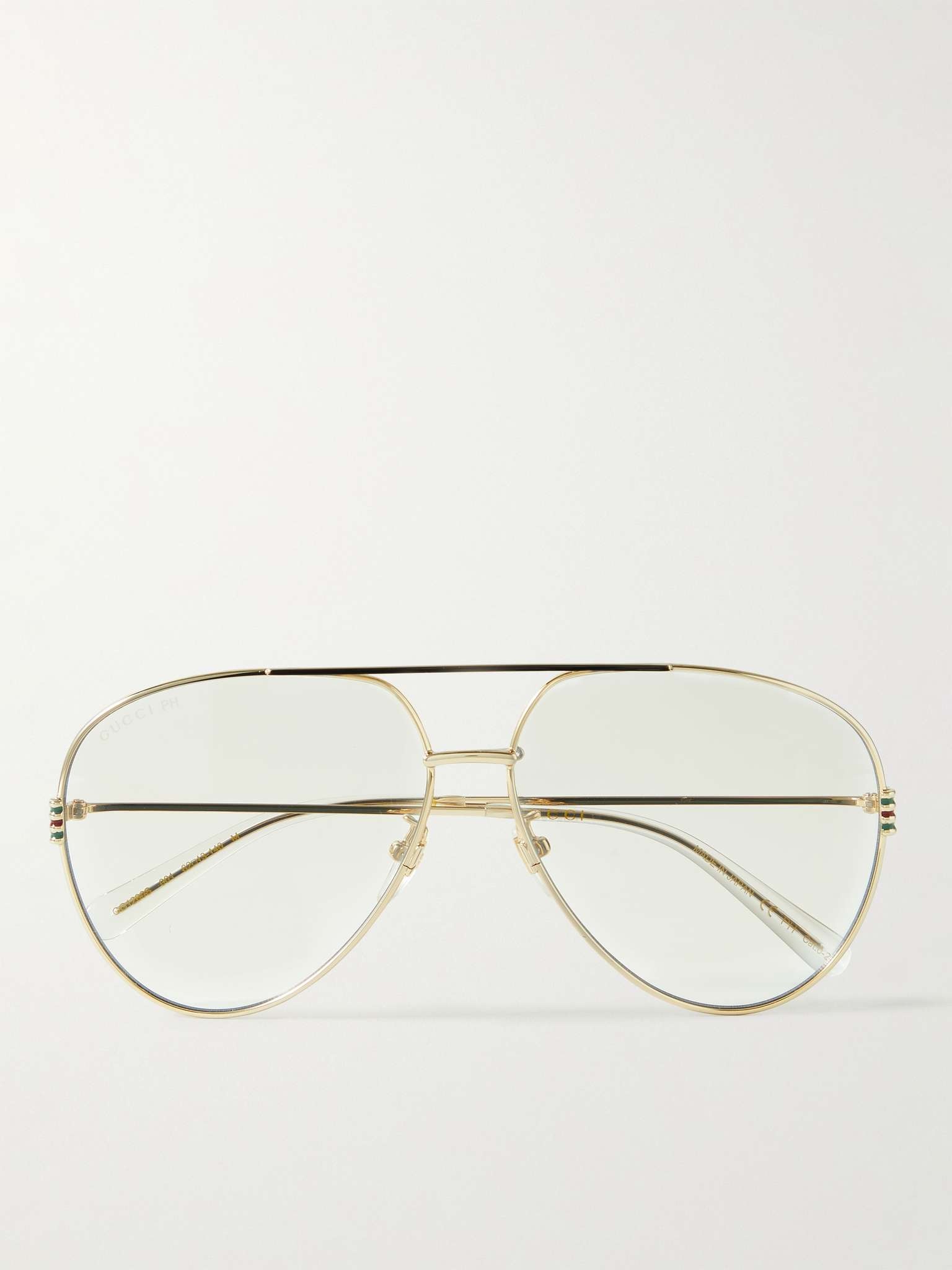 Gucci Eyewear's sunglasses are instantly recognisable by the label's signature stripes and GG logo on each side. Made in Italy, they're cast from gold-tone metal in a classic aviator shape and have comfortable nose pads. Details & Care - Gold-tone, red and green metal - Come with a case - 100% UV protection - This item has been imported