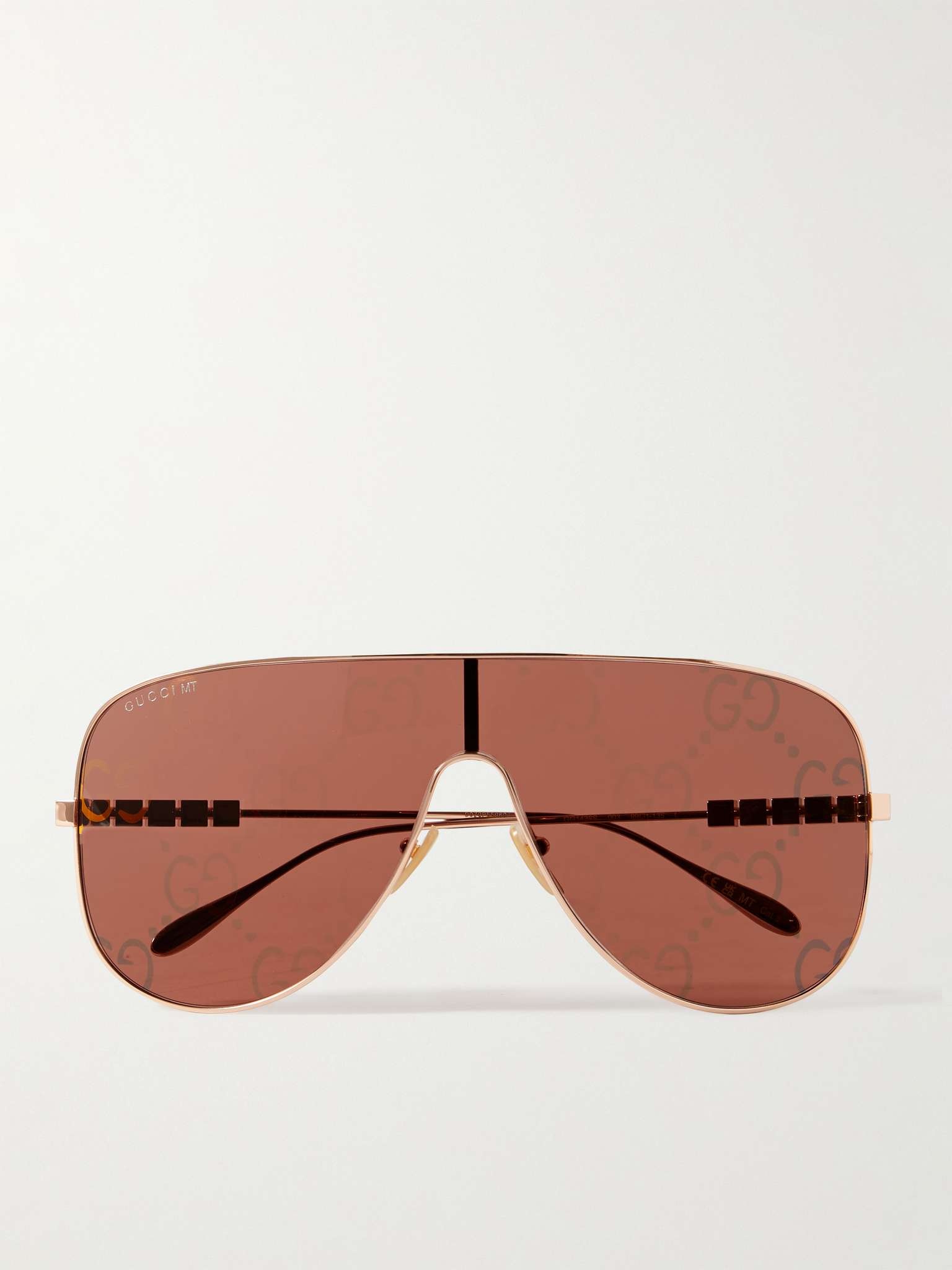 Gucci Eyewear's sunglasses make a statement with their oversized aviator-style lenses, which are printed with iridescent 'GG' logos. They're made from rose gold-tone metal and etched with the moniker on the temples. Size & Fit - Frame Width: 15cm / 5.9in - Frame Height: 6cm / 2.4in Details & Care - Rose gold-tone metal - Come with a case - 100% UV protection