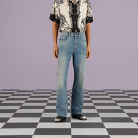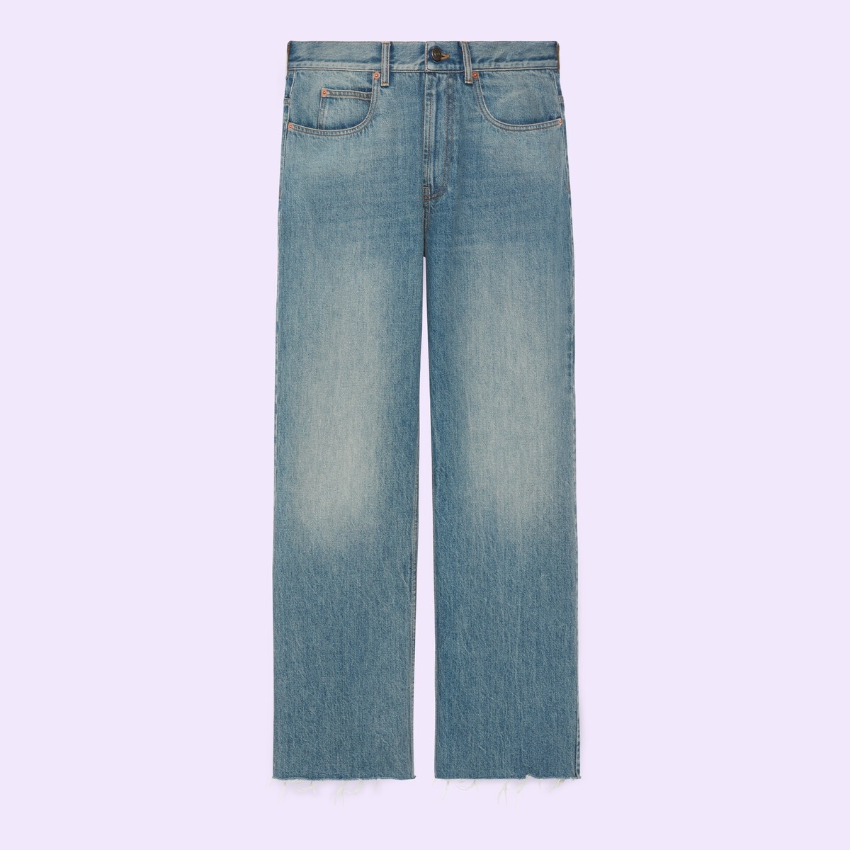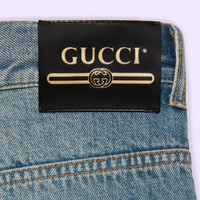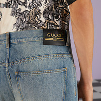 Denim, a cult fabric, continues to be reimagined through the Gucci lens. These baggy denim pants have raw cut edges and a five-pocket style. - Light blue stonewashed denim - Raw cut edges - Button and zip closure - Five-pocket style - Leg opening: 9.8", based on a size 32 (IT) - Made in Italy - The product shown in this image is a size 32 (IT)
