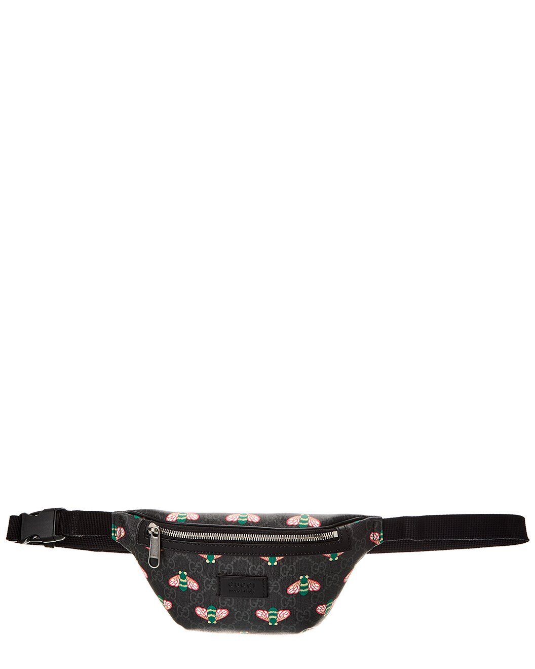 Animals from the House's menagerie appear each season, reflecting the House's passion for the natural world. Here, the Gucci bee is reimagined as a colorful print atop a belt bag. Crafted from GG Supreme canvas, the style is completed with tonal leather details. - Black GG Supreme canvas with bee print - Black leather trim - Cotton linen lining - Zip closure - 6.3"W x 4.7"H x 2.4"D - Made in Italy - The model is 6'1" tall - Weight: 200.gr
