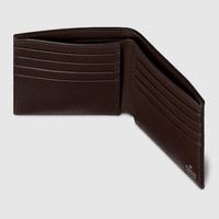 In the Fall Winter 2025 collection, the Horsebit motif defines a selection of small leather goods. Here, the emblematic symbol appears on this bi-fold wallet crafted in leather. - Dark brown leather - Palladium-toned hardware - Horsebit - Inside: Eight card slots and two bill compartments - Closed: 4.3"W x 3.5"H; Open: 8.2"W x 3.5"H - Made in Italy