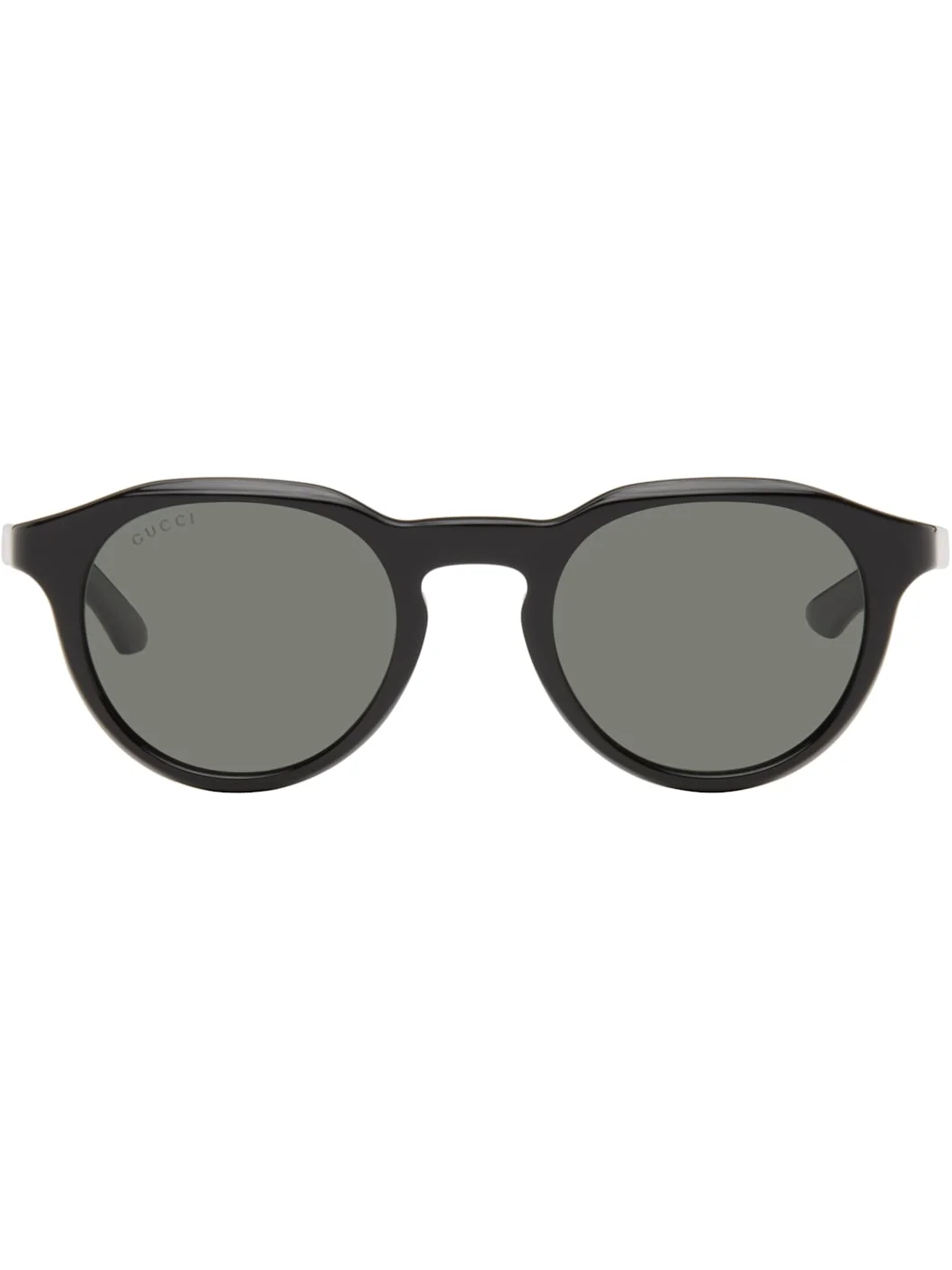 Round acetate-frame sunglasses. · Gray lenses · Logo etched at lens · Integrated nose pads · Keyhole bridge · Inset logo hardware at temples · Includes case · Size: 48.22 145 Color: Black/Black/Grey Acetate. Made in Italy 261451M134058