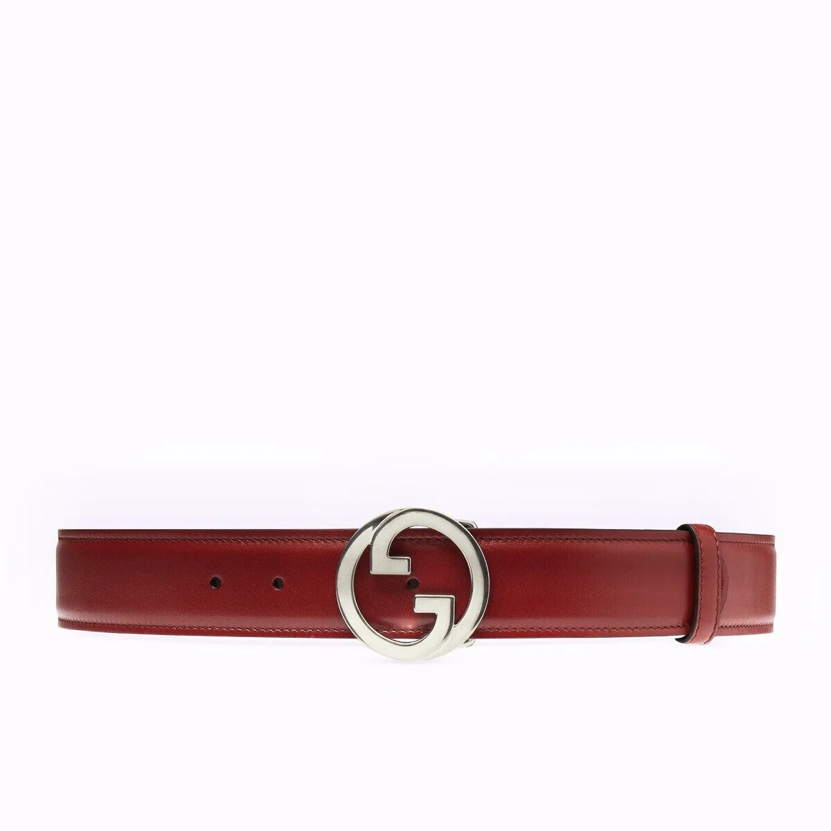 The accessories and pieces of ready-to-wear continue to reimagine and reintroduce heritage details. Here, this red leather belt is distinguished by an archival iteration of the House's monogram hardware. - Ruby red leather - Palladium-toned hardware - Round Interlocking G buckle - 1.6" belt width - Made in Italy - Can be worn as a hip belt. Sizing will differ based on where the belt is worn, please refer to the size guide to find your size.