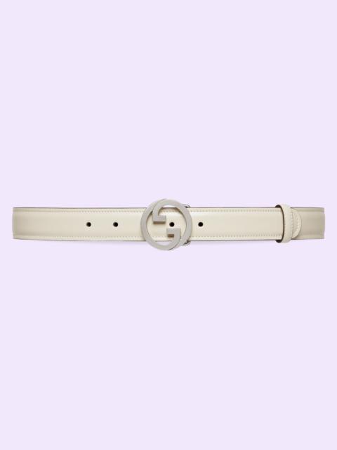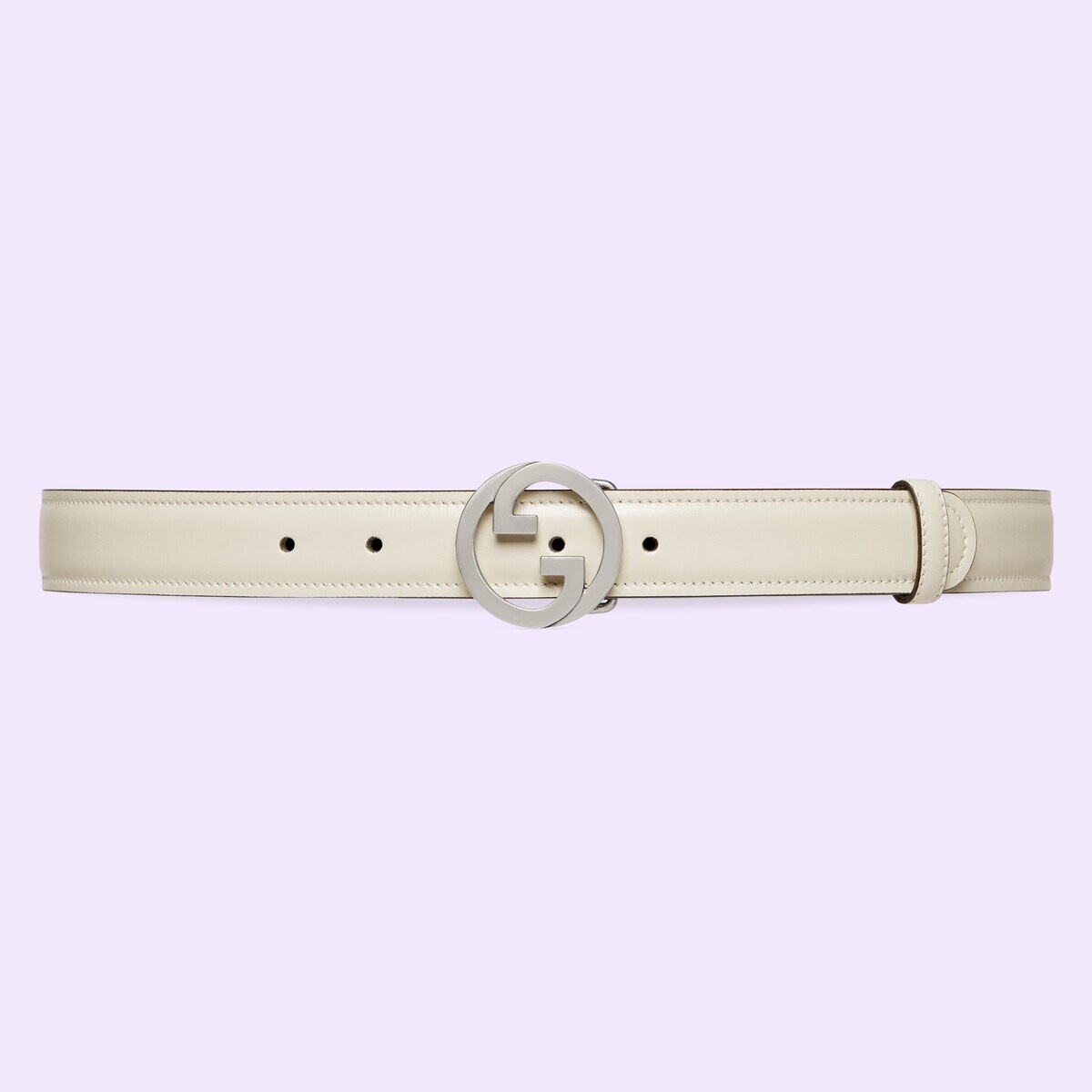 Accessories and pieces of ready-to-wear continue to reimagine and reintroduce heritage details. Here, this white leather belt is distinguished by an archival iteration of the House's monogram hardware. - White leather - Palladium-toned hardware - Round Interlocking G buckle - 1.2" width - Made in Italy - Can be worn as a hip belt. Sizing will differ based on where the belt is worn, please refer to the size guide to find your size.