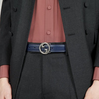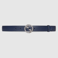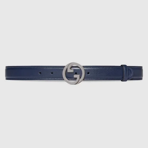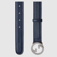 Heritage details and emblematic codes of the House continue to be reinterpreted each season. Here, this dark blue leather belt is defined by the Round Interlocking G buckle. - Darkblue leather - Palladium-toned hardware - Round Interlocking G buckle - 1.2" width - Made in Italy - Can be worn as a hip belt. Sizing will differ based on where the belt is worn, please refer to the size guide to find your size.