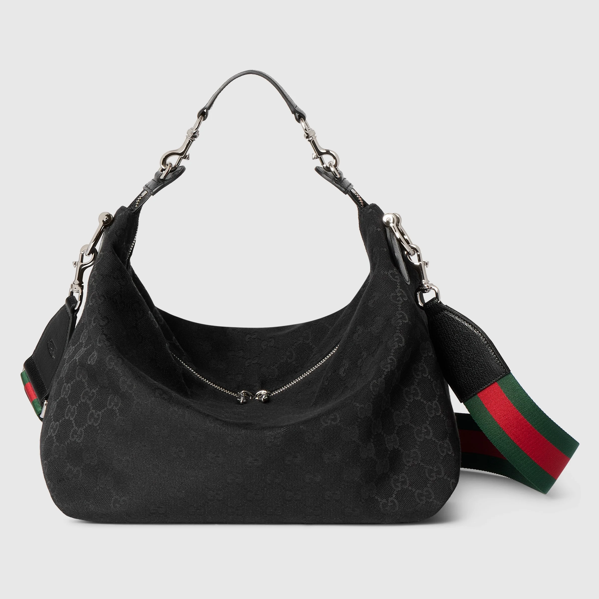 Introducing Spring Summer 2026.Named after the Milanese historic art district, Brera combines effortless elegance and versatility. Crafted from structured yet lightweight GG canvas, it highlights specially-developed hardware created for the style. - Black GG canvas - Black soft leather trim - Silver-toned hardware - Black canvas lining with Diamante motif - "Made in Italy by Gucci" logo on detachable leather handle - Inside: 1 zip pocket - 7" handle drop - Detachable and adjustable Web nylon strap with 25.5" drop; length 41.7" - 60.6" - Double zip closure - 12.9"W x 10.6"H x 5.9"D - Weight: 1.8lbs, approximately - Made in Italy - Fits up to a 13" laptop, iPad, A4 notebook, and small items