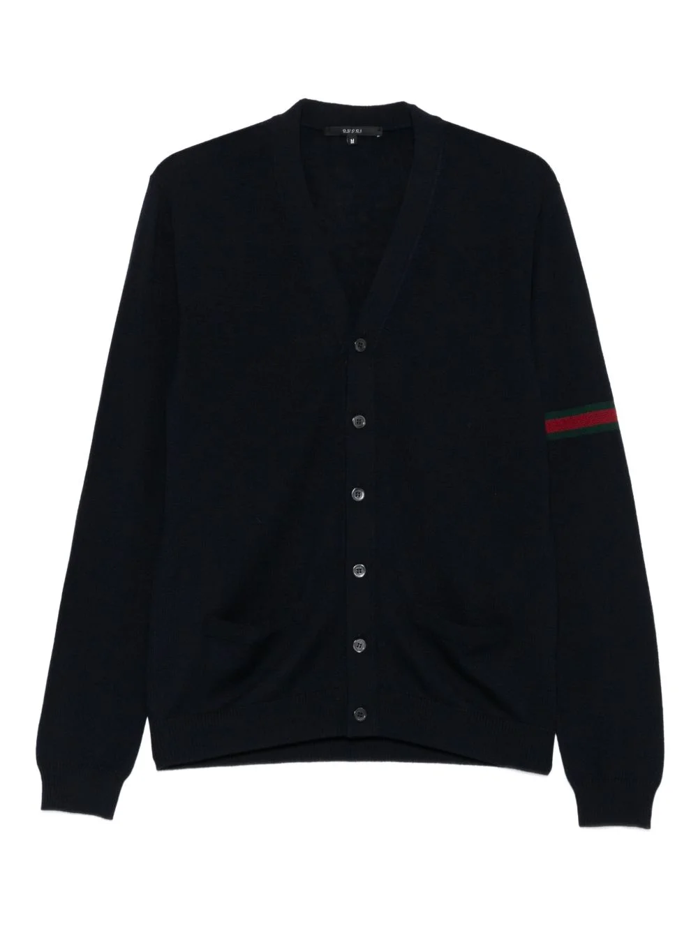 button-fastening cardigan Highlights - Navy blue - V-neck - Button front - Ribbed cuffs - Striped sleeve detail Imported Composition Fabric 100% SIZE & FIT Model measurements Height 6 ft 1 in(1.85 m) Bust/Chest 38.58 in(98 cm) Hips 37 in(94 cm) Waist 30.31 in(77 cm) Washing instructions Read Manufacturer Guidelines