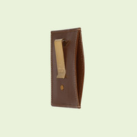 The Interlocking G has remained one of the most symbolic codes of the House since its introduction. The distinguishing emblem appears as a leather detail atop this beige and ebony card case. Adding to the design's logo feel, the style is crafted from monogram canvas. Adding a versatile feel, the accessory is completed by a money clip. - Beige and ebony GG Supreme canvas - Brown leather trim - Moiré lining - Oval leather tag with Interlocking G - 2 card slots, 1 pocket - Money clip on the back - 3.9"W x 2.8"H - Made in Italy - Weight: 0.125kg approximately
