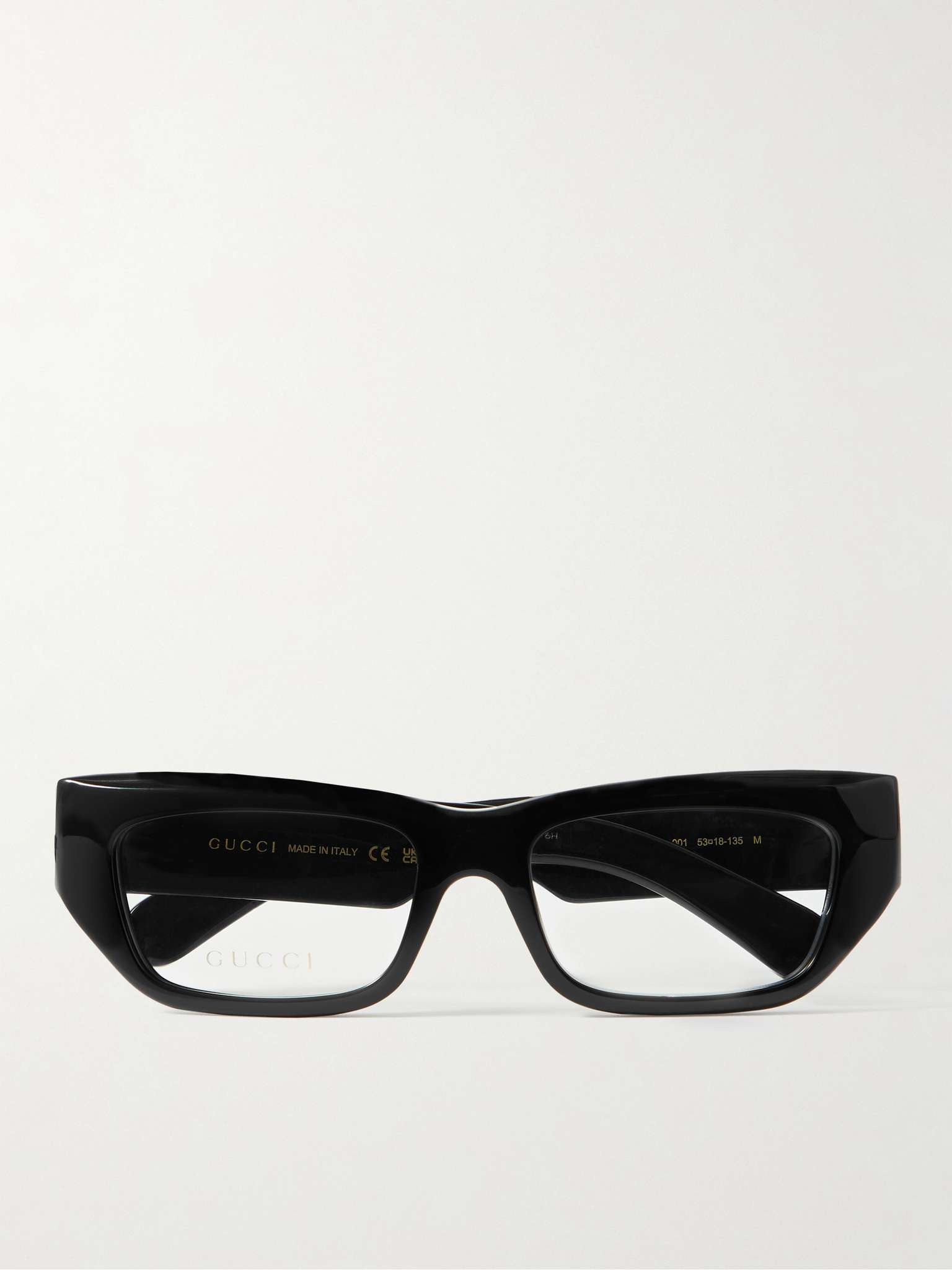 Gucci Eyewear's eyeglasses are crafted from glossy acetate in a thick, rectangular shape. Made in Italy, they're detailed wit house's gilded logo in capitalised lettering along the arms. Size & Fit - Frame Width: 15cm / 5.9in - Frame Height: 4cm / 1.6in Details & Care - Black acetate - Come with a case - Can be fitted with prescription or UV-protective lenses