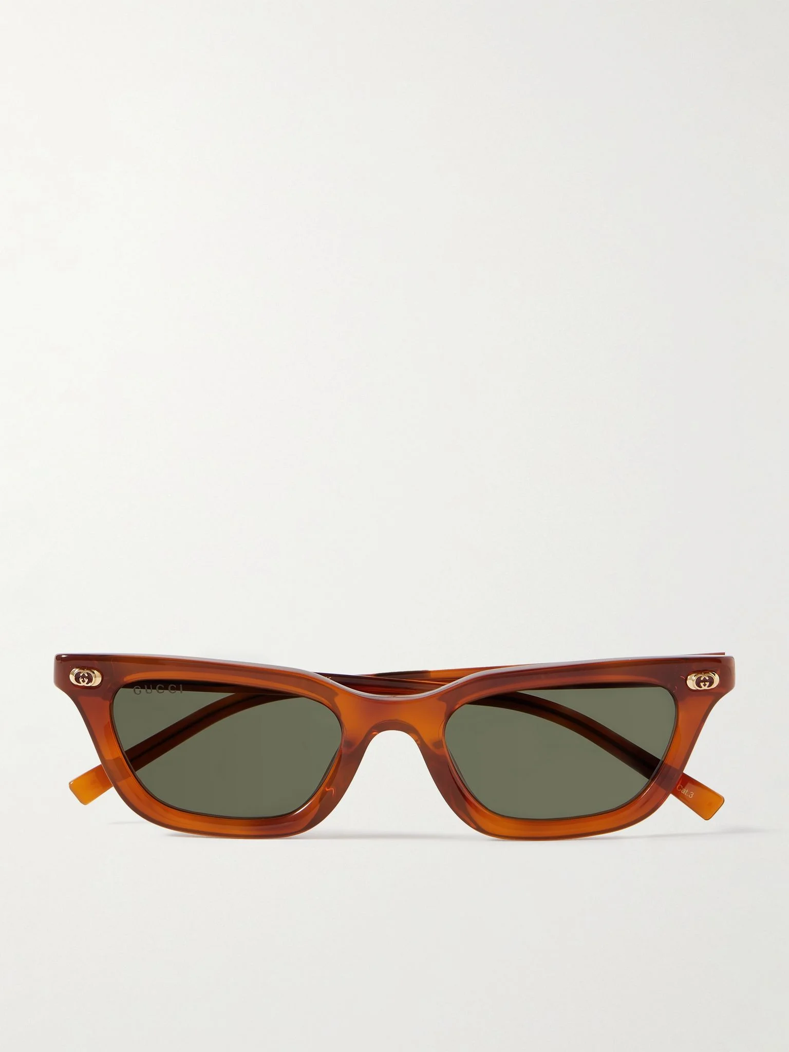 Gucci Eyewear's sunglasses feature a cat-eye twist on classic D-shaped frames. They've been made in Italy from glossy 'Havana' acetate and are detailed with gold-tone 'GG' monograms. Details & Care - Camel acetate - Designer colour: Havana - Come with a case - 100% UV protection