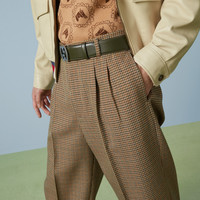In a play between textures and applications, the most iconic motifs of the House enhance ready-to-wear designs throughout the Pre-Fall 2023 collection. This brown and orange check wool pant features a subtle Interlocking G leather patch. - Brown and orange check wool - Oval Interlocking G leather patch - Belt loops - Front pleats - Metal buckles on the back waistband - Back flap pockets - Zip and button closure - Leg opening: 9.4" based on a size 48 (IT) - Made in Italy - The product shown in this image is a size 46 (IT)
