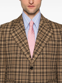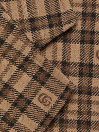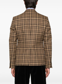 Double G-logo check-pattern blazer Highlights - Camel brown/multicolour - Wool blend - Check pattern - All-over signature double g logo - Notched lapels - Long sleeves - Buttoned cuffs - Chest welt pocket - Two front flap pockets - Central rear vent - Internal slip pocket - Full lining - Straight hem - Front button fastening - We've partnered with good on you â an independent agency that rates how brands perform in relation to their impact on the planet, people and animals, with a multi-criteria rating simplified to a five points scale. in order to be awarded our conscious label, larger brands need to score a minimum of four out of five ('good'), while smaller brands must score at least three out of five ('it's a start'). - This item comes from a brand rated three out of five ('it's a start') by good on you at the time it was added on farfetch. please note, this is a brand-level rating and does not guarantee that this product is made with conscious materials. - Learn more about what makes a product conscious on our conscious criteria page Made in Italy Composition Outer: Wool 69%, Polyester 30%, Silk 1% Lining: Viscose 100%, Cupro 100% SIZE & FIT FittingInformation Designed for a slim fit, offering a comfortable fit that sits just away from the body The vented hem offers movement at the rear Made from a midweight non-stretch fabric This piece fits true to size – take your usual size