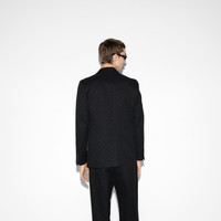 Taking inspiration from founder Guccio Gucci's monogram, the GG motif continues to be a firm favorite of the House. This deconstructed jacket has been made from a cotton and polyester GG canvas. - Black cotton and polyester GG canvas - Fully lined - Deconstructed - Single breasted - Notch lapel - Chest pocket - Two front pockets - Rear vent - Internal chest pocket - Button closure - Length: 29.1"; based on a size 48 (IT) - Made in Italy - The product shown in this image is a size 48 (IT)