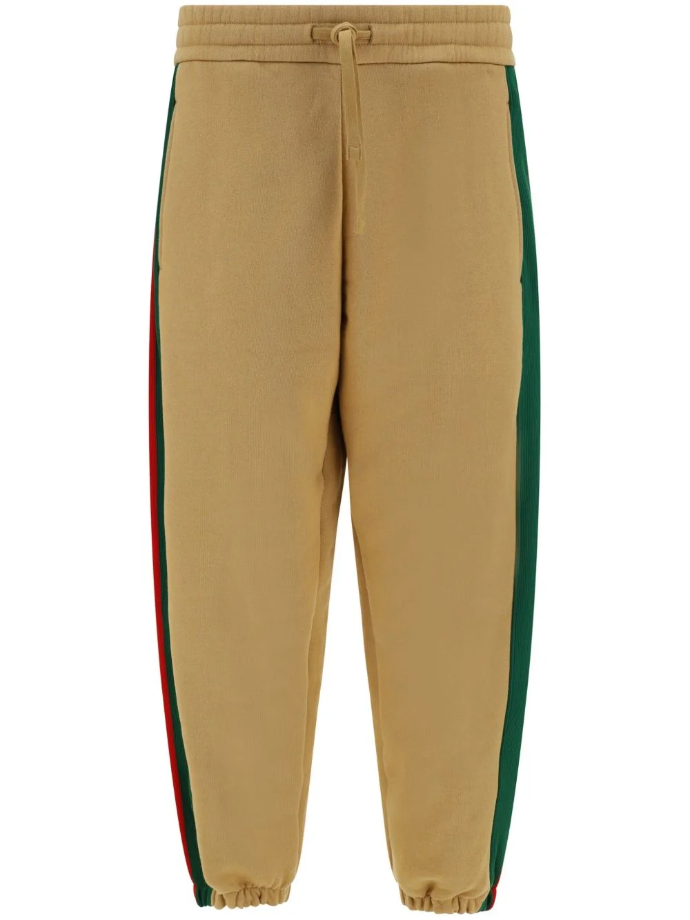 logo-embroidered cotton track pants Highlights - Camel beige/multicolour - Cotton - Jersey texture - Embroidered logo at the leg - Signature web-stripe trim - Ribbed trim - Elasticated drawstring waistband - Two side slash pockets - Rear patch pocket - Elasticated ankles Made in Italy Composition Cotton 100% Washing instructions Read Manufacturer Guidelines